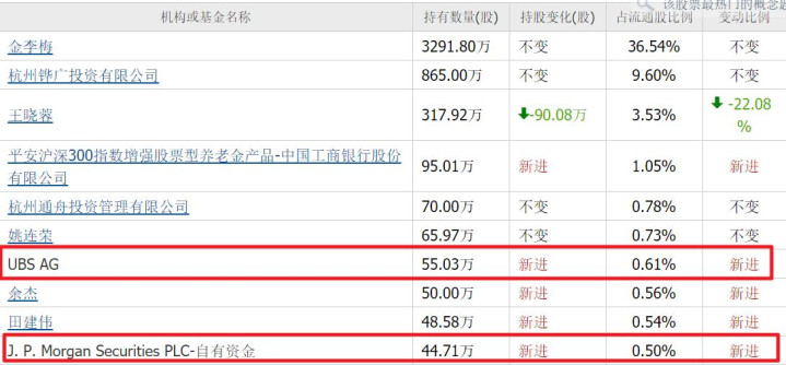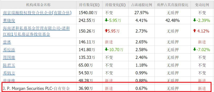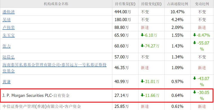 J.P摩根三季度新进36万股,位列第十大流通股东。